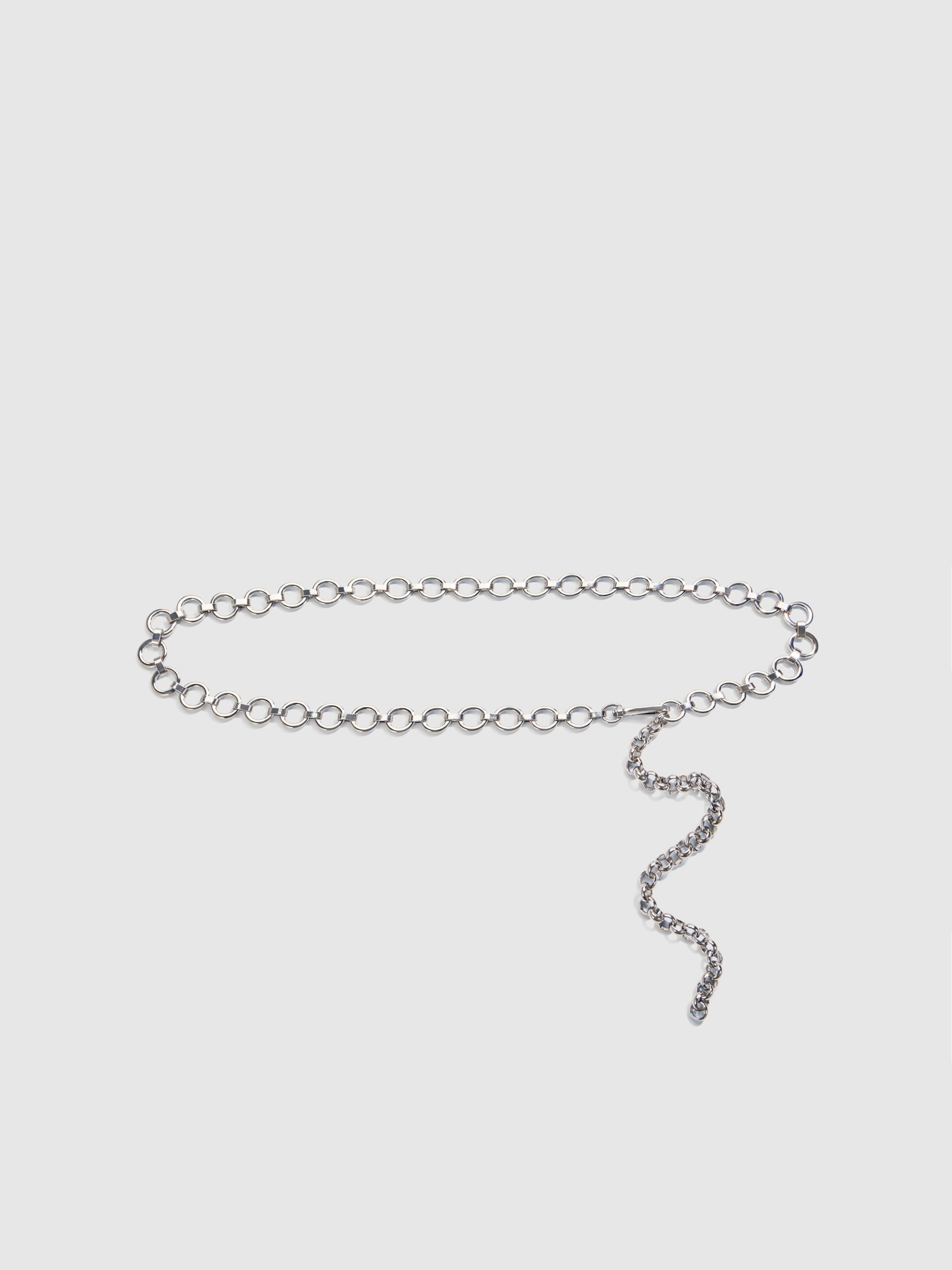 Make your outfit pop this season with the Lucy Chain Belt. This must have statement piece features silver linked hoops and an adjustable clasp.