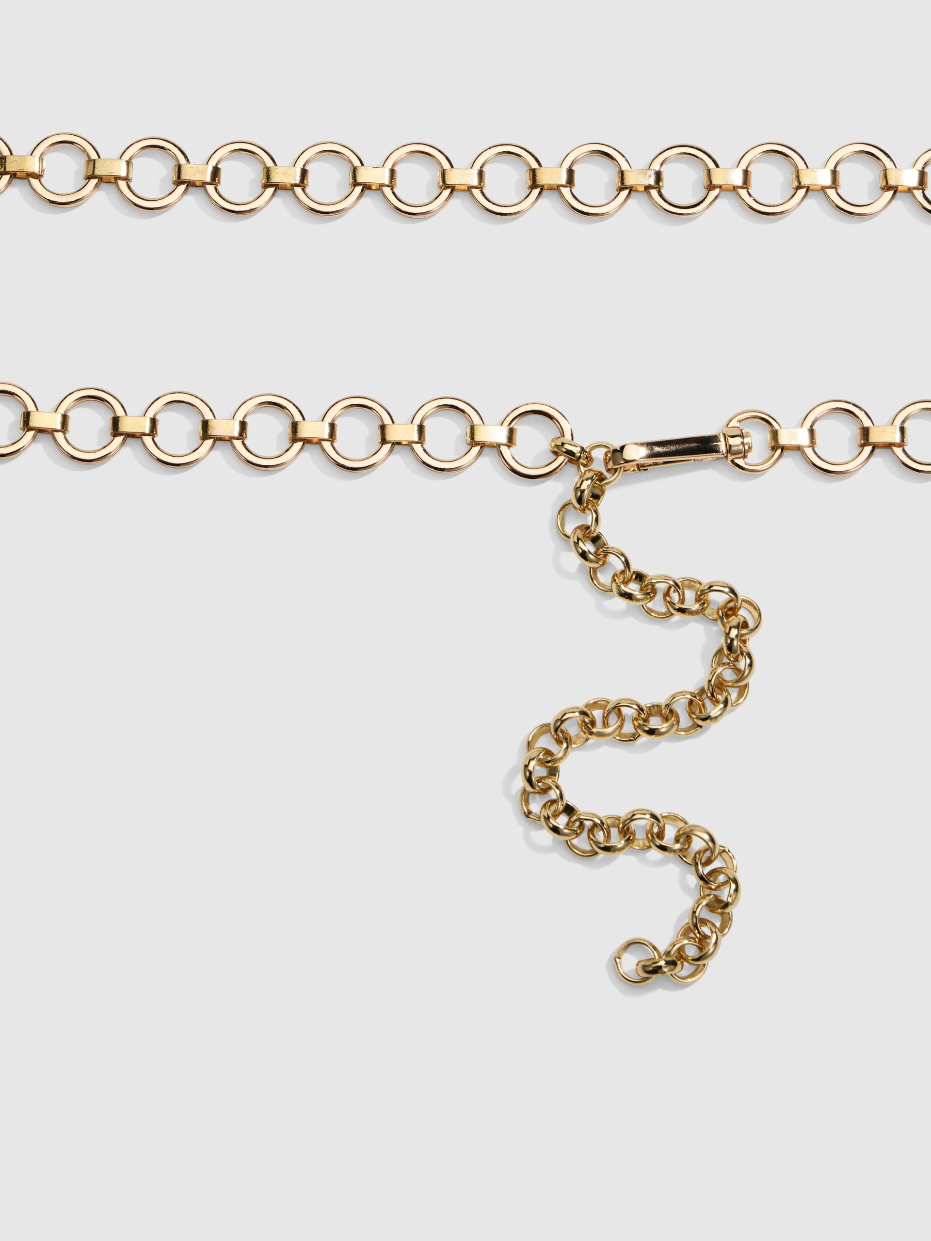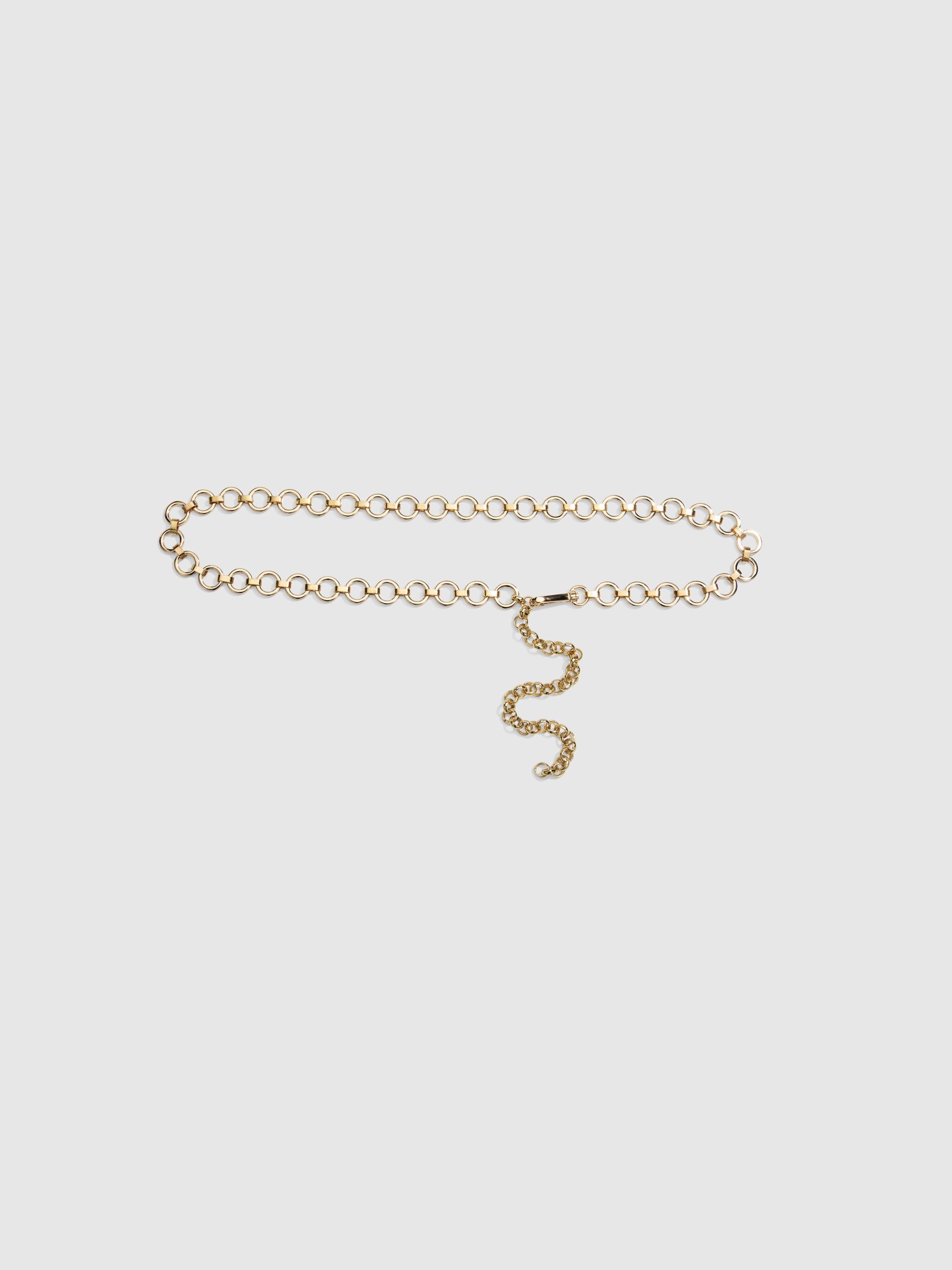 Make your outfit pop with this seasons must have statement piece the Lucy Chain Belt. Featuring linked hoops and an adjustable clasp.