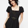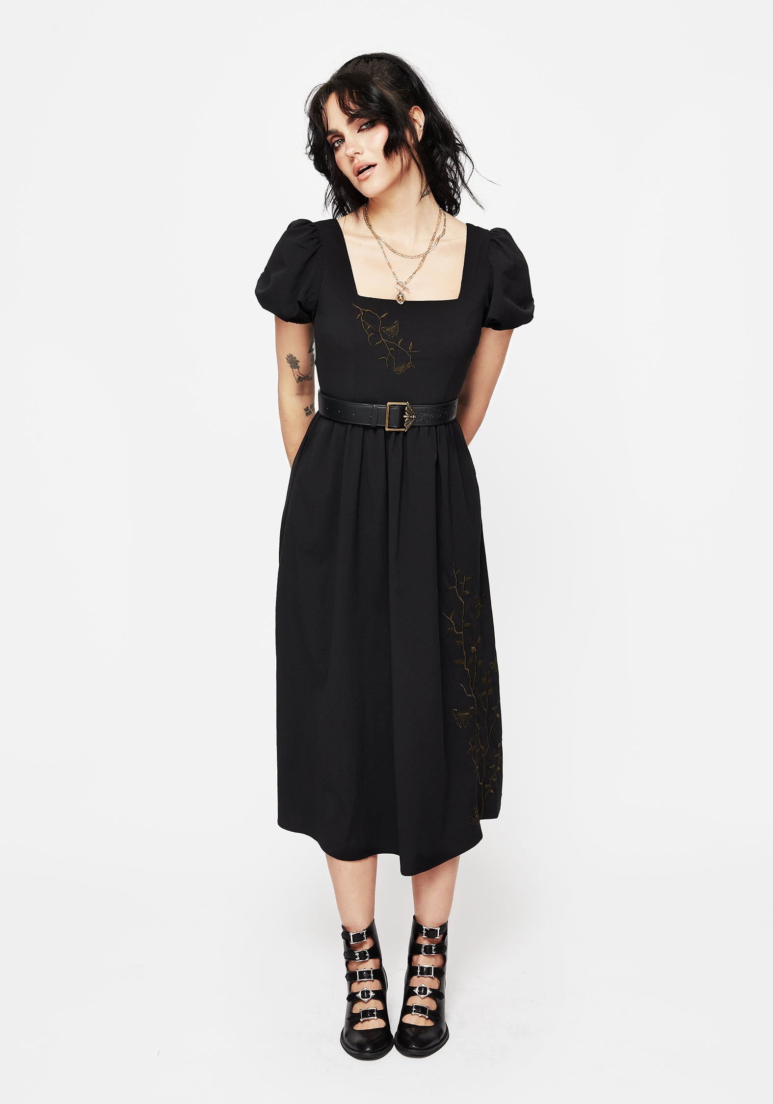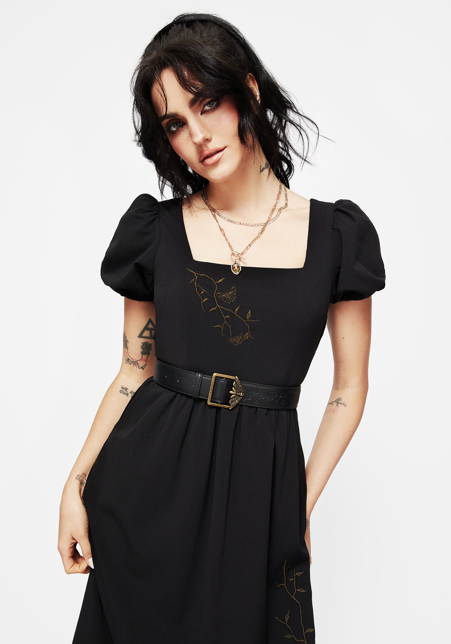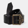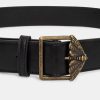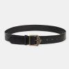 - Black Faux Leather Rose Debossed Jeans Belt with Gold Moth Buckle