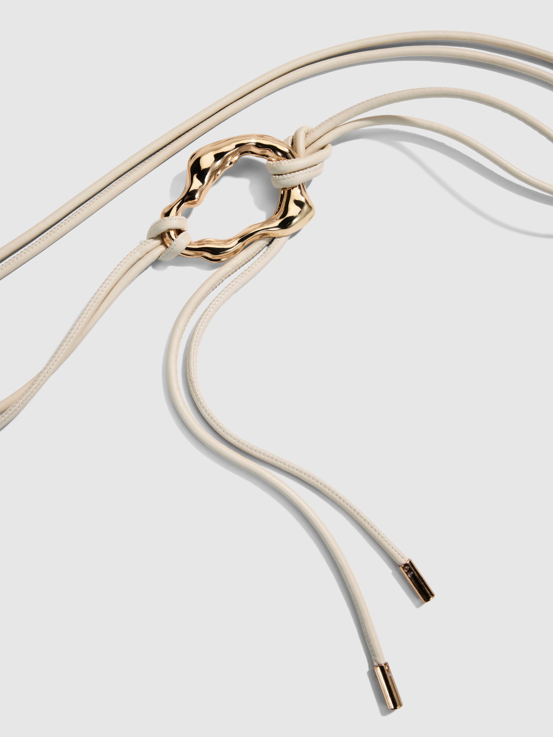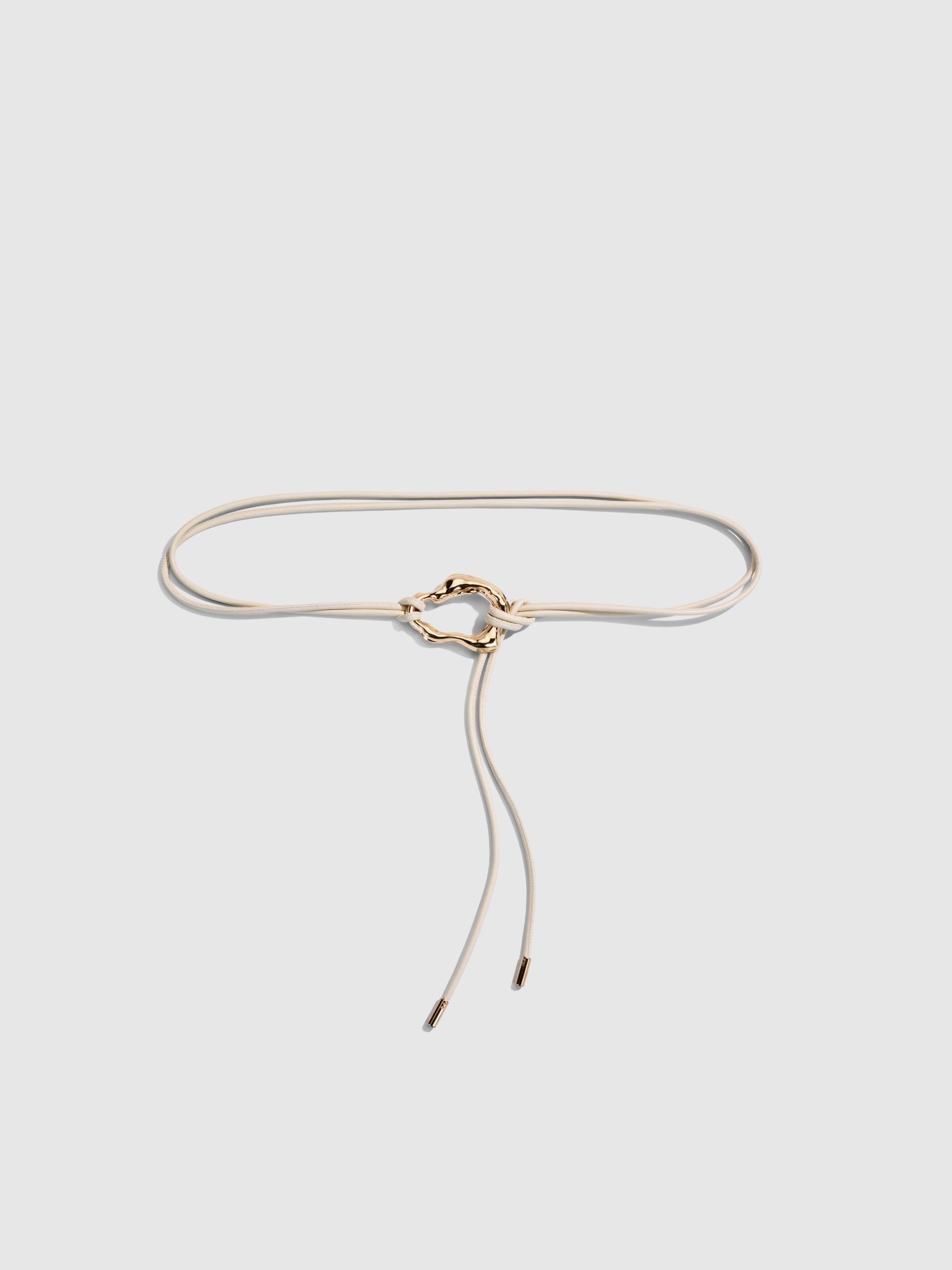 Elevate simplicity with the Wabi Sabi Belt – a double strap, tie waist belt in cream with gold organic shaped closure.